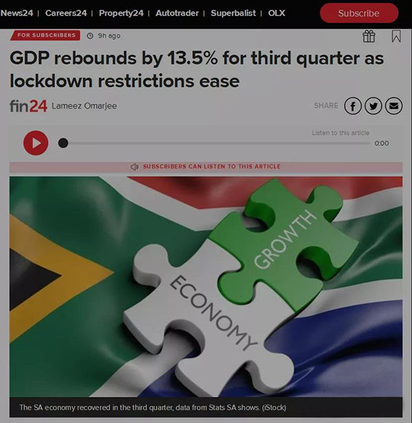 不过,马鲁勒克表示,虽然第三季度经济增长势头良好,但较2019年第四季度依然缩水5.8%,但南非经济若想恢复到疫情以前的水平,恐怕还有很长一段路要走。,特别是目前南非新冠肺炎疫情出现反弹,这也为南非实现快速经济复苏的目标蒙上阴影。
